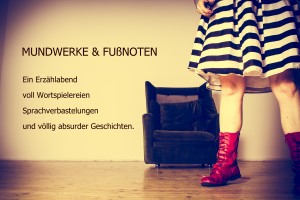 Erfahren Sie mehr »Ein Probentag! Ja, das muss natürlich zwischendurch auch mal sein. Heute basteln die Erzählerin Monica Stach (www.sagasusa.at), die Musikerin Jutta Goldgruber (Lehrtätigkeit Uni für Musik und darstellende Kunst, Wien) und ich, Michaela Aigner, an unserem neuen Projekt: “Mundwerke & Fußnoten – Ein Erzählabend voll Wortspielereien, Sprachverbastelungen und völlig absurder Geschichten.” Man darf gespannt sein